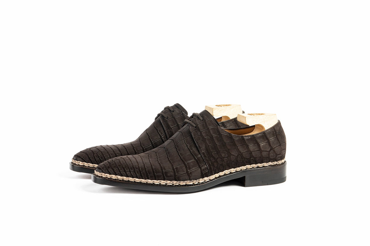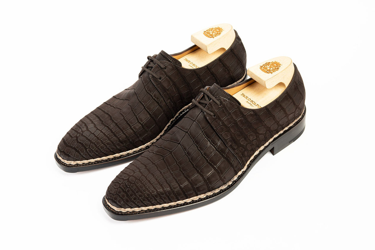 Sample Sale: Paolo Scafora Art. 504 Derby In Nubuck Alligator (UK 7.5)